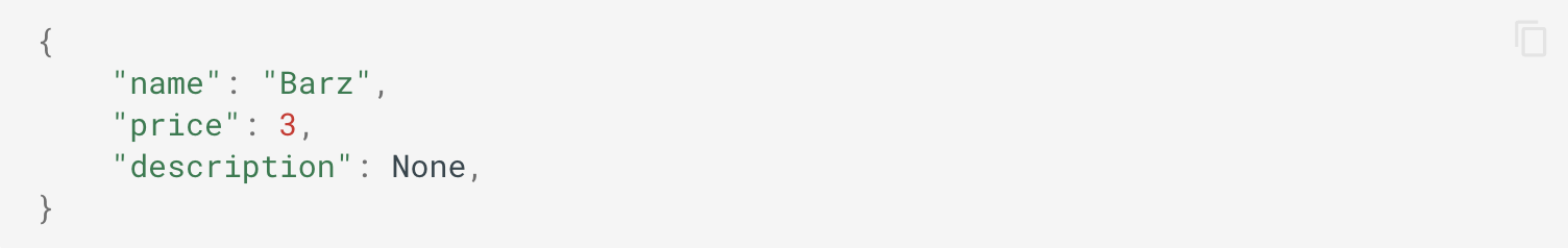 - ( exclude_unset 를 사용하여) 입력 모델로부터 기본 값을 제외한 dict 을 생성합니다.